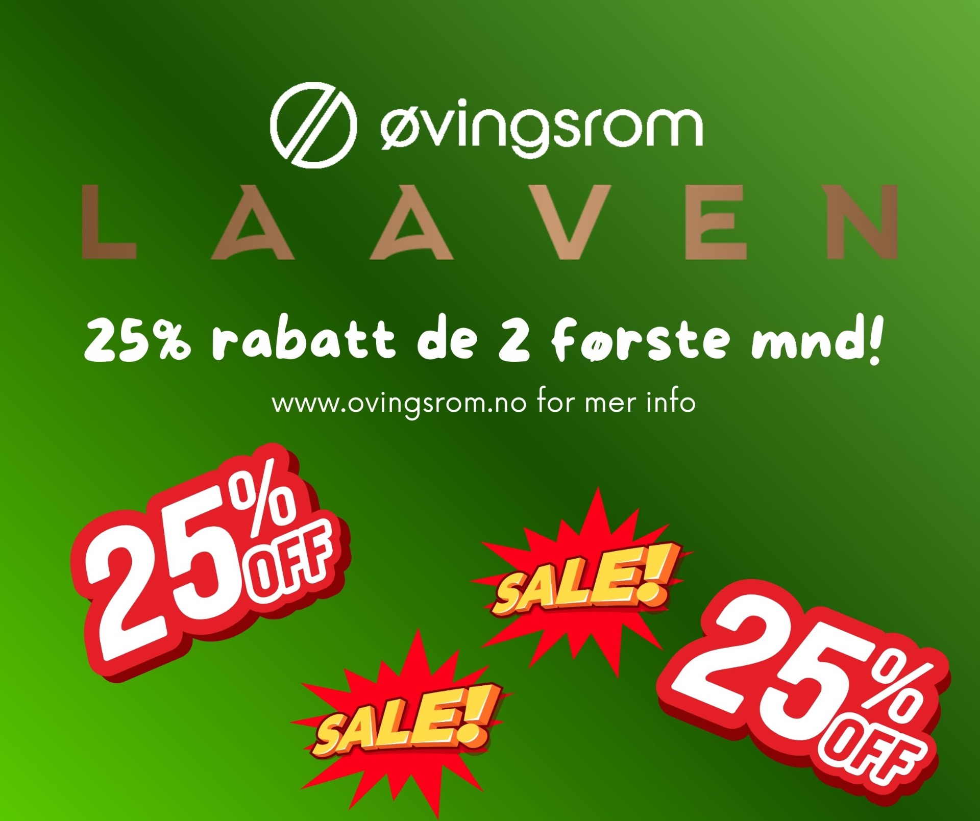 Ledige øvingsrom på Laaven for umiddelbar overtakelse